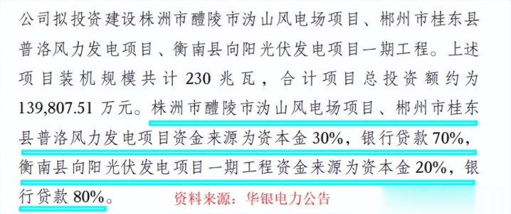 从融资模式来看,华银电力近几年投建的新能源项目,大多用的是少部分资本金加上大部分银行贷款的方式。
